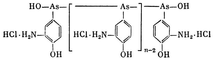 Лишь в 50-х годах, когда сальварсан уже перестали применять как средство против люэса, малярии, возвратного тифа, советский ученый М. Я. Крафт установил его истинную формулу. Оказалось, что сальварсан имеет полимерное строение