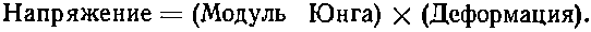 Силу, действующую на единичной площади, называют напряжением, а удлинение участка, отнесенное к его длине, т. е. относительное удлинение называют деформацией. Уравнение (38.3) можно переписать следующим образом: