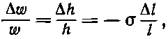 При растяжении, подчиняющемуся закону Гука, возникает еще одно осложнение: если брусок материала растягивается в одном направлении, то под прямым углом к растяжению он сжимается. Уменьшение толщины пропорционально самой толщине w и еще отношению ?l/l. Относительное боковое сжатие одинаково как для ширины, так и для его высоты и обычно записывается в виде
