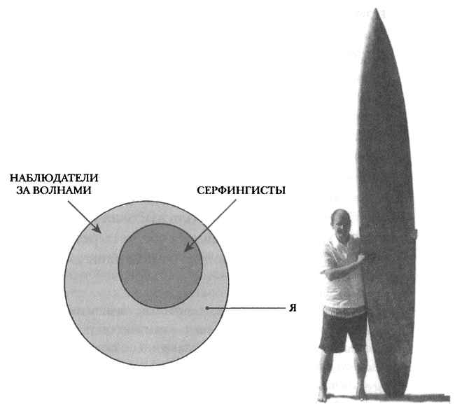 Я энергично кивал, но вовсе не горел желанием попробовать. Потому что наверняка промахнусь мимо «идеальной точки входа». Мне никогда не доводилось стоять на доске, я ни разу не пробовал прокатиться даже на тех смехотворно малых волнах, что омывают побережье в Сомерсете, там, где я живу. Так что испытывать судьбу со вздыбленными чудовищами, которые с ревом бросаются на полинезийское побережье, не собирался. Себе я отвел роль исключительно стороннего наблюдателя. И твердо знал свое место в круге Эйлера, размеченном на секторы «наблюдатели за волнами» и «серфингисты»: