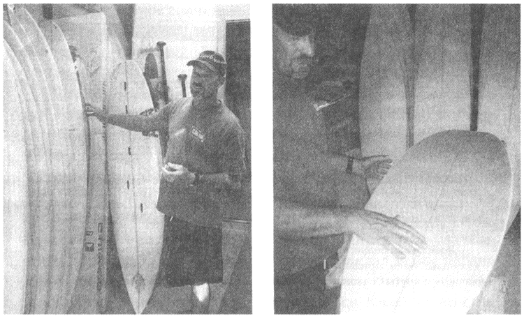 Похоже, несущественная разница в общей форме доски и ее поперечном сечении может существенным образом повлиять на ходовые характеристики. Серфингисты, с которыми мне довелось говорить, придают мелочам вроде длины доски, контура днища (плоское или изогнутое), расположения плавников в хвосте огромное значение. По правде говоря, я был настроен скептически и договорился о встрече с одним из местных мастеров, делающих доски. Таких мастеров называют шейперами.