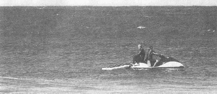 Между тем волна оказалась последней в цуге; он подплыл к берегу и нырнул в сильное обратное течение. Обратное течение — та вода, которую выносит на берег прибоем; после вода стекает снова в море. Поток вынес его, как пушинку, к самому гидроциклу: забравшись на него, он продолжал наблюдать за состязаниями. Да уж, про таких говорят: «Показал настоящий класс!»