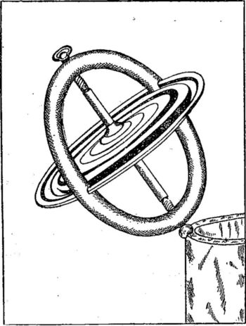 Рис. 16. Особый волчок — гироскоп. Благодаря быстрому вращению сохраняет устойчивость в любом положении.