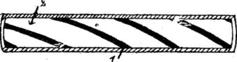 Чтобы этого не случилось, снарядам еще в канале ствола сообщают, кроме поступательного, также и вращательное движение. Для этого в стволе делают «нарезы» — винтообразные желобки (рис. 17 и 18), а на снарядах — медные «ведущие пояски» (см. рис. 13).[9]