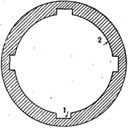 Рис. 17. Нарезы в канале ствола: 1) нарез; 2) поле.