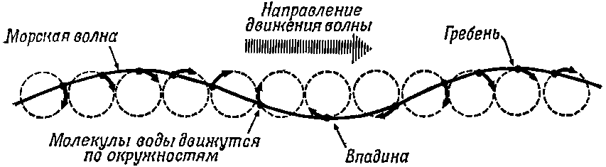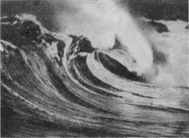 Итак, мы познакомились с некоторыми интересными свойствами волн, с различными усложнениями, зависящими от фазовой скорости и длины волны, а также с зависимостью скорости волны от глубины и т. д.; все это приводит к весьма сложным, а потому и интересным явлениям природы.