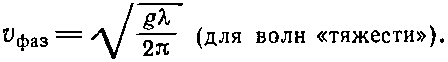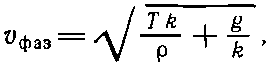 где Т — поверхностное натяжение, а ? — плотность. Здесь все наоборот: чем короче длина волн, тем большей оказывается фазовая скорость. Если же действуют и сила тяжести и капиллярная сила, как это обычно бывает, то мы получаем комбинацию