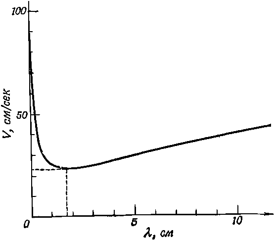 Фиг. 51.11. График зависимости фазовой скорости от длины волны для воды.