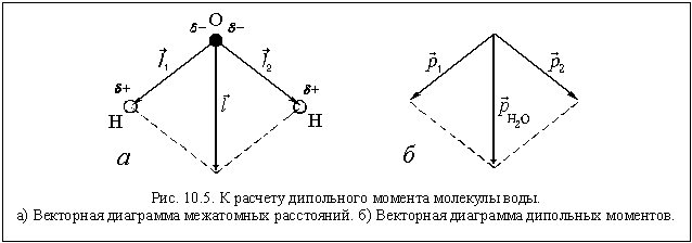 Зная дипольные моменты, можно рассчитать частичные заряды на атомах. Так частичный заряд на атоме водорода равен 0,33 е, а частичный заряд на атоме кислорода равен –0,66 е.