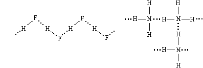 В жидком фтороводороде его молекулы связаны водородными связями в довольно длинные цепи, а в жидком и твердом аммиаке образуются трехмерные сетки.