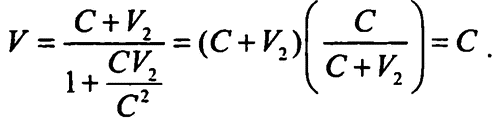 На самом деле это может быть выражено математически. Если две скорости (V1 и V2) прибавляются друг к другу, то, по Ньютону, их суммарная скорость должна быть V = V1 + V2. По Эйнштейну же, суммарная скорость будет равна: