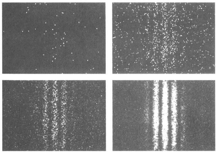 Что ж, какой бы невероятной задача ни казалась, выполнить ее возможно — с помощью фильтров, которые сократят интенсивность света, позволяя пропускать через прорези фотон за фотоном. Вместо того чтобы после прохождения через прорезь ударяться о стену, каждый фотон улавливается высокочувствительной камерой и записывается в виде белой точки.