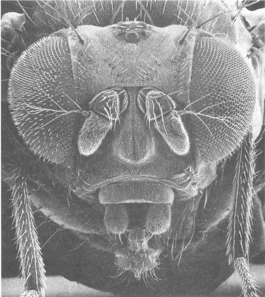Электронный микроскоп увеличивает настолько, что становится видно: дрозофиле давно пора приобрести средство для удаления волос с лапок
