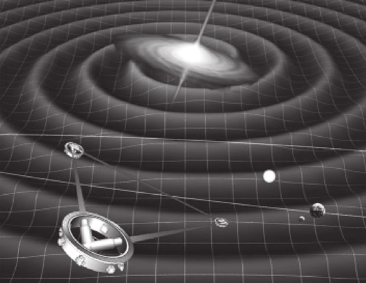 Задумываясь над природой волн гравитации, вспомним, что, согласно общей теории относительности, тяготение возникает в результате искривления окружающего нас пространства-времени. Если представить пространство в виде упругой резиновой пленки с ямками от массивных «шариков» звезд, то их колебания вызовут вибрацию всей пленки. Образно это можно назвать волновой рябью пространства-времени.