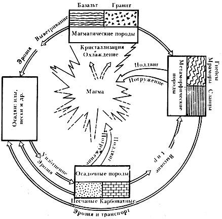 Рис. 10. Соотношение магматических, осадочных и метаморфических горных пород