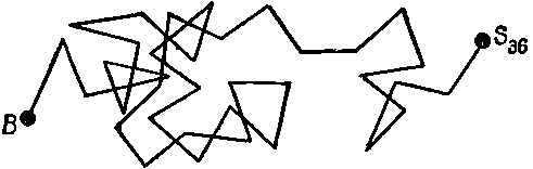 Фиг. 41.6. Зигзагообразный путь из 36 случайных шагов длиной L. Как далеко расположена точка S36 от В? В среднем на 6L.