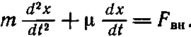 Теперь хорошо бы вычислить коэффициент a в уравнении (41.17); для этого нужно еще кое-что добавить. Предположим, что если к частице приложена сила (она не имеет никакого отношения к броуновскому движению, просто мы подыскиваем выражение для импульса), то частица будет противодействовать силе следующим образом. Прежде всего должна проявиться инерция. Пусть m — коэффициент инерции, эффективная масса частицы (не обязательно настоящая масса настоящей частицы, потому что если протаскивать частицу сквозь воду, то движется и вода). Поэтому если мы рассматриваем движение в одном направлении, то нужно обзавестись с одной стороны слагаемым m(d2x/dt2). Далее подчеркнем, что, если мы толкаем частицу равномерно, она должна тормозиться жидкостью с силой, пропорциональной скорости. Кроме инерции жидкости, существует еще сопротивление течению, вызванное вязкостью и сложным строением жидкости. Для возникновения флуктуации абсолютно необходимо существование необратимых потерь, нечто вроде сопротивления. Пока таких потерь нет, нет способа получить kT. Причина флуктуации тесно связана с такими потерями. Мы еще обсудим, каков механизм такого трения, мы поговорим о силах, пропорциональных скорости, и выясним, откуда они берутся. А пока давайте просто предположим, что такое сопротивление существует. Тогда формула для движения под действием внешней силы, если она толкает частицу самым обычным способом, выглядит так: