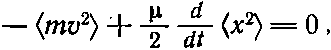 Мы разбили первоначальное слагаемое на два и должны усреднить их оба. Посмотрим, чему же равно произведение х на скорость. Это произведение не изменяется со временем, потому что, когда частица попадает в заданную точку, она уже не помнит, где она была раньше, и характеризующие такие ситуации величины не должны зависеть от времени. Поэтому среднее значение этой величины равно нулю. У нас осталось лишь mv2, а об этой величине нам кое-что известно: среднее значение mv2/2 равно 1/2 kT. Следовательно, мы установили, что