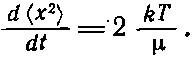 Применим эту формулу также в том случае, когда сила не внешняя, а равна беспорядочным силам броуновского движения. Попробуем определить средний квадрат пройденного телом пути. Будем рассматривать расстояния не в трех, а в одном измерении и определим среднее значение х2, чтобы подготовить себя к решению задачи. (Разумеется, среднее значение х2 равно среднему y2 и среднему z2, поэтому средний квадрат расстояния будет втрое больше того, что мы получим.)
