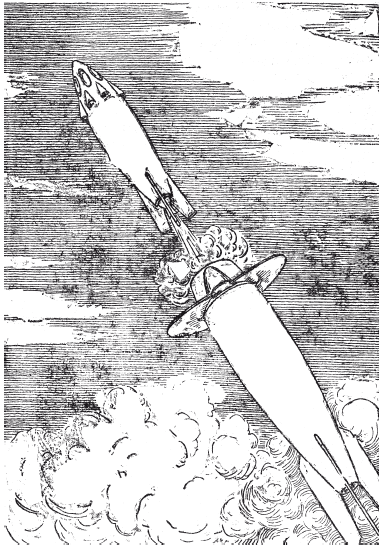 Рис. 32. Ракеты Циолковского в полете (фантастический рисунок)