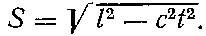 Здесь l — длина предмета или расстояние между событиями, a t — длительность существования предмета или промежуток времени между событиями. Корень квадратный из этой величины и есть интервал: