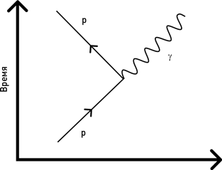 Рассуждения Ферми, как и почти вся современная физика, начинается с упоминания света; в данном случае речь шла о современной квантовой теории взаимодействия света с веществом. Вспомните, что Фейнман, доказывая существование антивещества, придумал графический метод анализа фундаментальных процессов в пространстве и времени. Здесь воспроизведена пространственно-временная картина электрона, испускающего фотон, но с заменой электрона на протон p.