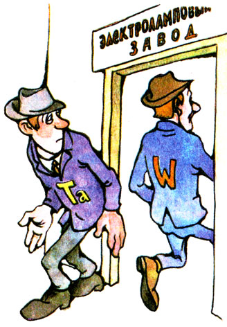 И, действительно, суровые законы конкурентной борьбы, царящие в мире металлов, вскоре лишили тантал работы. На это теплое местечко был взят другой металл — вольфрам, который оказался еще более тугоплавким.