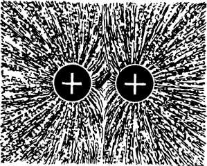 Одноименно заряженные кружки, когда их обсыпают гипсом, дадут картину электрического поля, изображенную на рисунке 9.