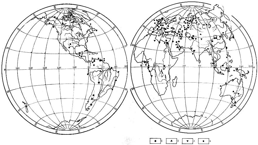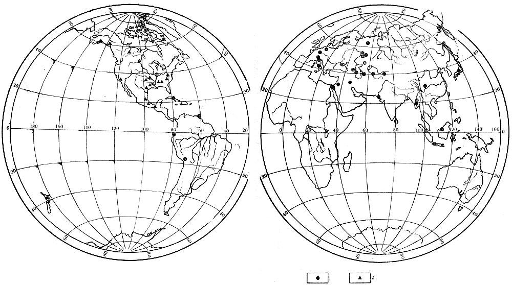 В Юго-Восточной Азии выходы нефти были известны еще до прихода европейцев. Так, португальцы и немцы, высадившиеся в 1596 году на островах Ява, Суматра и Борнео, услышали от местных жителей о нефтепроявлениях. Так же обстояло дело и в Новом Свете: индейцы Северной Америки и Мексики издавна с помощью одеял собирали нефть на выходах. После высадки испанцев об этих выходах стало известно в Европе: в 1526 году о нефтепроявлениях на о. Куба, в 1544-1551 годах - на территориях Перу и Боливии (в том числе и в районе озера Титикака), в 1855 году - Эквадора и Тринидада ("смоляное" озеро) и т.д. Таким образом, к XIX столетию стало известно о распространении нефти и других битумов в разных частях света (рис. 1).