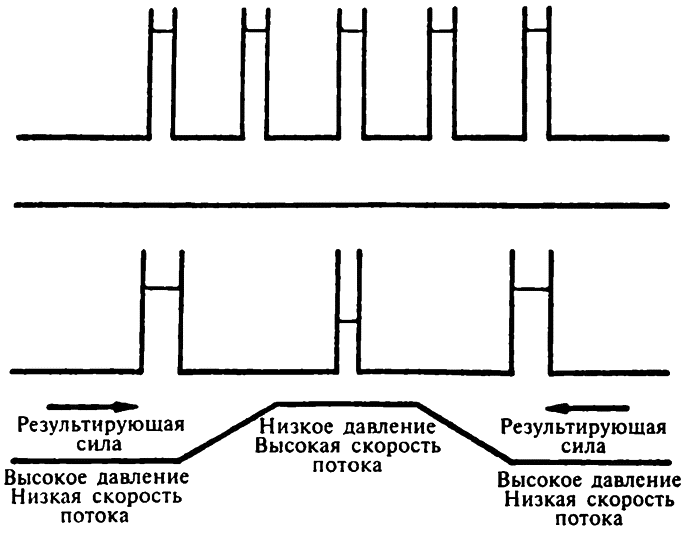 Движение жидкости оказывает влияние на ее давление. Вообразите столб воды, текущей через горизонтальную трубку некоего данного диаметра. Вода находится под давлением, иначе она бы не перемещалась, и давление (сила на единицу площади) — одно и то же во всех точках, поскольку вода течет с одной и той же скоростью во всех пунктах. Это можно продемонстрировать, если проткнуть трубку через некоторые интервалы и вставить в каждое отверстие еще одну трубку. В каждой трубке вода поднимется на один и тот же уровень.
