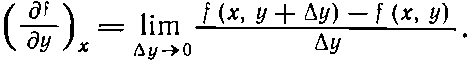 Предположим, что функция f(x, у) зависит от двух независимых переменных х и у. Под символом (?f/?x)у мы понимаем самую обычную производную, получаемую общепринятым способом, если у постоянна: