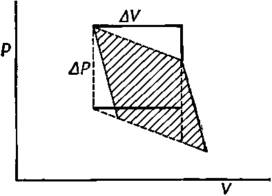 Фиг. 45.2. Заштрихованная площадь=Площадь, ограниченная пунктирными линиями=Площадь прямоугольника=?P?V.