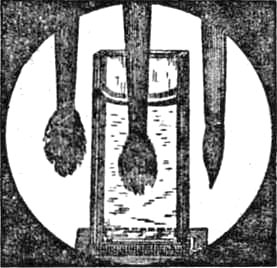 Я начну с явления, которое вы все, вероятно, видели десятки раз, не подозревая, что имеете дело с настоящим физическим опытом. Вот у меня обыкновенная кисточка, какую употребляют для рисования красками. Как сделать, чтобы волоски кисточки слиплись и образовали заостренный кончик? Вы скажете, надо кисточку смочить, и тогда ее волоски слипнутся, потому что будут мокрыми. Хорошо. Попробуем произвести опыт. Так как кисточка мала и плохо видна сидящим далеко, я помещаю ее перед фонарем, и теперь вы все видите ее в увеличенном виде на экране (рис. 1, слева). Сейчас она суха, и волоски ее видны в отдельности. Теперь я погружаю кисточку в воду, вынимаю ее, и, как мы ожидали, волоски слипаются (рис. 1, справа), потому что, как мы обыкновенно говорим, кисточка мокрая. Теперь я опускаю кисточку в воду и оставляю ее там; и что же — волоски совсем не слипаются (рис. 1, посредине), а ведь они, несомненно, мокрые, раз они находятся в воде.