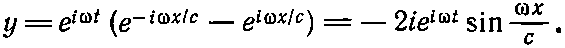 Мы получили нечто новое и интересное. Из этого решения ясно, что если мы посмотрим на любую точку х нашей струны, то увидим, что она осциллирует с частотой ?. Совершенно неважно, где находится эта точка, все равно частота будет той же самой! Однако на струне есть такие места (где sin(?x/c)=0), которые вообще не перемещаются. Более того, если в любой момент времени t сделать моментальный снимок колеблющейся струны, то на фотографии получится синусоидальная волна, но величина ее амплитуды будет зависеть от времени t. Из выражения (49.3) можно видеть, что длина одного цикла синусоидальной волны равна длине какой-либо из волн: