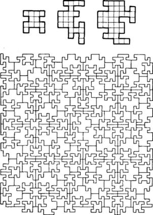 Рис. 3.12. Набор из трех типов плиток полиомино может заполнить плоскость целиком, но заполняющий узор не обладает периодичностью.