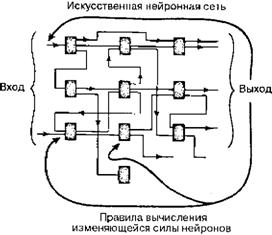 Элементы, обозначенные квадратиками на рис. 3.15 (вы можете считать их, например, транзисторами), способны играть роль нейронов мозга, что позволяет создавать и рассматривать специальные электронные устройства, называемые искусственными нейронными сетями. В таких сетях можно задавать различные правила изменения силы синапсов (обычно это делается для получения более качественных выходных сигналов). Используемые правила всегда носят вычислительный характер, поскольку исследователи вводят их для удобства моделирования на компьютере. Собственно говоря, всю эту ситуацию можно рассматривать в качестве теста (т.е. если вы можете моделировать поведение системы на компьютере, то она является вычислительной), однако применение этого теста носит иногда парадоксальный характер. Например, Джеральд Эдельман предложил учитывать в работе мозга некоторые функции, которые он считал «невычислимыми». Как он учел эти функции? Да очень просто — промоделировал выполнение этих функций на своем компьютере! Но ведь если компьютеру удалось их осуществить, то они относятся к вычислимым!