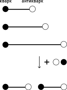 Это похоже на растягивание резиновой ленты. В конце концов лента, вместо того чтобы растягиваться до бесконечности, разорвется на две части. Каждый кусок ее в данном случае будет символизировать новую связанную пару кварк – антикварк.