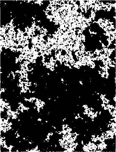 Рис. 10.1. В критической точке могут появляться флуктуации самых разных размеров. На рисунке представлены результаты компьютерного моделирования критического перехода в системе «жидкость—газ», где черные точки означают жидкое состояние, а белые — газообразное состояние вещества. Аналогично будет выглядеть картина намагничивания, если такими же точками обозначить участки с противоположной ориентацией спинов. Флуктуации могут охватывать как отдельные частицы, так и целые крупные участки системы, из-за чего для них не существует никакого характерного размера. Физики называют эти флуктуации безмасштпабными.