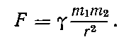 Догадка эта даже сегодня не может представиться легкой и естественной. Если она и проста, то наверняка гениальна. Сила тяготения F пропорциональна массам притягивающихся тел m1 и m2, но она убывает тем сильнее, чем больше становится квадрат расстояния между центрами притягивающихся масс r2. Именно квадрат! Не просто расстояние, не куб его, а квадрат. И именно между центрами масс. Дело происходит так, как если бы вся масса каждого тела была сосредоточена в бесконечно малом объеме — в точке, совпадающей с центром тяжести. Понять и обосновать это Ньютону стоило больших трудов.