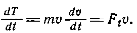 Попробуем вычислить прямо из второго закона Ньютона, как обязана меняться кинетическая энергия; мы продифференцируем кинетическую энергию по времени и потом применим закон Ньютона. Дифференцируя 1/2 mv2 по времени, получаем