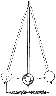 Посмотрите, как движется маятник стенных часов. Он всё время качается вправо и влево (рис. 1). Дойдя до крайнего, например, правого положения, маятник на мгновение останавливается и потом идёт влево. Скорость его увеличивается до тех пор, пока он не дойдёт до среднего положения. Затем движение маятника начинает замедляться, и в крайнем левом положении он вновь останавливается. В следующее мгновение маятник опять начинает двигаться — теперь уже вправо. Половина размаха маятника или расстояние от среднего положения его до одного из крайних называется амплитудой колебания.