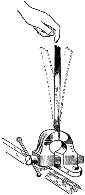 Рис. 2 Линейка, зажатая в тисках, колеблясь, рождает звук