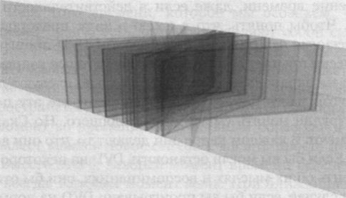Вы видите, что концепция реальности, которую принимает Чуви, его замороженный образ текущего мгновения, ничем не хуже концепции реальности, которую принимаете вы. Так что если при определении того, что представляет собой реальность, мы не учтём его точку зрения, то получим чрезвычайно узкое представление. Для Ньютона такой равноправный подход не мог привести к каким-либо различиям, поскольку во Вселенной с абсолютным пространством и абсолютным временем слои настоящего совпадают для всех наблюдателей. Но в релятивистской Вселенной, нашей Вселенной, различия велики. Поскольку наша обычная концепция того, что существует прямо сейчас, включает только один слой настоящего — мы обычно видим прошлое, как уже ушедшее, и будущее, как ещё не наступившее, — то мы должны расширить этот образ, включив слой настоящего Чуви, т. е. мы должны включить такой слой настоящего, который, как показало обсуждение, может существенно отличаться от нашего собственного. Более того, поскольку начальное положение Чуви и его скорость движения произвольны, мы должны включить слои настоящего, связанные со всеми возможностями. Эти слои настоящего будут центрированы на положении Чуви или на положении некоторого другого реального или гипотетического наблюдателя в пространстве и будут поворачиваться на угол, который зависит от выбранной скорости. (Единственное ограничение следует из предела скорости, установленной светом, и, как объяснено в примечаниях, в использованном нами графическом представлении это соответствует ограничению угла поворота сорока пятью градусами по или против часовой стрелки). Как вы видите, на рис. 5.5 собрание всех слоёв настоящего заполняет солидную область пространственно-временно?й буханки. Фактически, если пространство бесконечно — если слои настоящего простираются в бесконечность, — то поворачивающиеся слои настоящего могут быть центрированы произвольно далеко, и поэтому их объединение заметает (при повороте) каждую точку блока пространства-времени.[34]