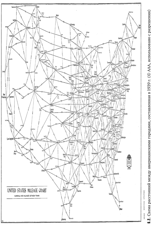 Допустим, это не так: предположим, что данные на схеме не являются высокоупорядоченными. Если я нанесу на схему четыре сотни случайных чисел и попрошу нанести расположение городов на карту, то у вас практически наверняка ничего не получится. Например, схема может говорить вам, что от Далласа до Денвера 900 миль, от Денвера до Солт-Лейк-Сити 500 миль, а от Далласа до Солт-Лейк-Сити 8000 миль. Это лишено всякого смысла, не так ли? В соответствии с такими данными Солт-Лейк-Сити находится в двух местах в зависимости от того, как вы едете: напрямую из Далласа или с остановкой в Денвере. Ситуация похожа на шутку в День дурака, когда ваш друг перемешивает элементы разных пазлов и предлагает вам собрать картину. Вы безуспешно пытаетесь сложить элементы до тех пор, пока не начинаете подозревать, что над вами подшутили.