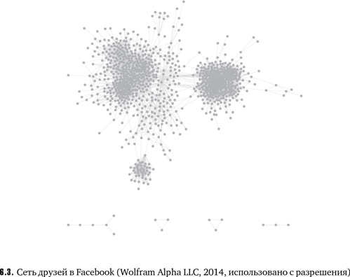 На самом деле нет ничего особо странного в том, что сети взаимосвязей могут вырываться из пространства. Взять хотя бы взаимосвязи между людьми. Наша социальная жизнь слишком сложна, чтобы уложить ее в пространственную карту. Нельзя сказать, что люди не пытаются сделать это. Генеалогические деревья транслируют генетические и брачные связи в близость в пространстве, а социальные сети делают аналогичные попытки. Веб-сайт Wolfram Alpha, например, представляет сеть друзей в Facebook с помощью точек, обозначающих друзей, и линий, соединяющих тех, кто связан друг с другом. Расстояние в пространстве на карте отражает социальную близость, оцениваемую по количеству общих друзей. Обычно наши друзья образуют отчетливые круги общения: семья, одноклассники, коллеги по работе, друзья по спортивной команде, поклонники группы Radiohead и т.д. Если эти люди приходят на общую вечеринку, то они могут скапливаться в разных углах, а фигуральное расстояние между ними — превращаться в реальное.