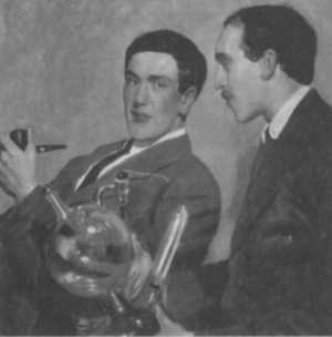 Петр Капица (слава) рядом с Николаем Семеновым, лауреатом Нобелевской премии по химии 1956 года. Борис Кустодиев, 1921 год.