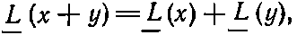 Эта комбинация «операций» над переменной х обладает интересным свойством: если вместо х подставить (х+у), получится сумма одинаковых операций над х и y, а умножение х на число а сводится к умножению на это число первоначальной комбинации. Это легко доказать. Чтобы не переутомиться, записывая все буквы, вошедшие в (25.1), давайте введем «скорописные» обозначения. Обозначим всю левую часть уравнения (25.1) символом _L(х). Увидев такой символ, вы должны мысленно представить себе левую часть уравнения (25.1). Поэтому, согласно этой системе, символ _L(x+y) будет означать следующее:
