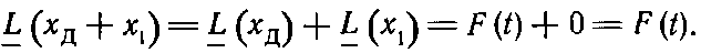 и мы нашли его частное решение. Назовем его решением Джо xД, т. е. _L(xД)=F(t). Хотелось бы найти еще одно решение этого уравнения. Добавим к решению Джо какое-нибудь решение свободного уравнения (25.5), например x1. Тогда, вспомнив о (25.3), получим