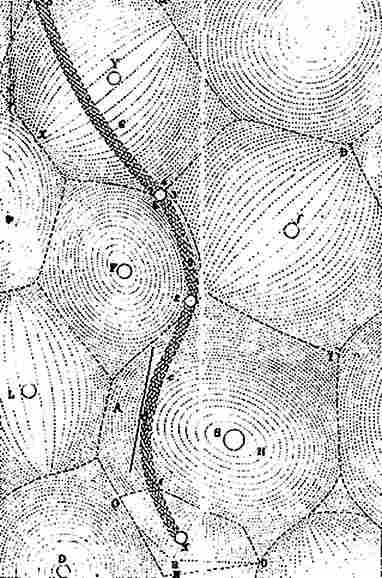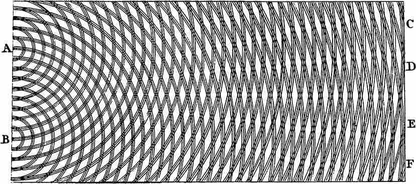 Набросок Томаса Юнга двухслойной интерференции, основанный на наблюдениях волн воды
