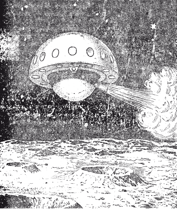 Рис. 26. Межпланетный перелет на ракетной летательной машине Кибальчича (фантастический рисунок)
